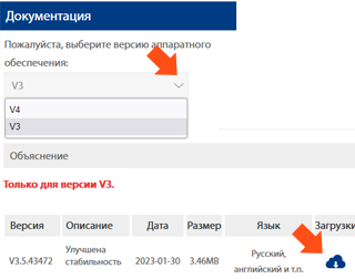 | 3.1. Зайдите на сайт производителя по ссылке Выберите в Документации версию вашего роутера. Будьте внимательны, установка неверной версии может привести к неисправности устройства. Ознакомьтесь с информацией производителя по обновлению. Загрузите на компьютер последнюю версию прошивки в поле Загрузки. | ![]() |