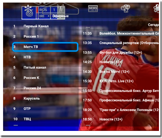 | 1.3. Появится список телеканалов. Нажмите на любой. Трансляция телеканала должна начаться. | ![]() |