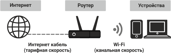 1. Пропускная способность роутера соответствует скорости тарифа